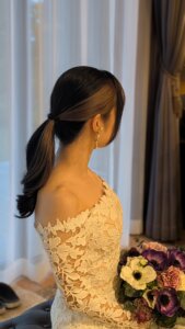 シンプルなポニーテールにまた、ドレスの相性もぴったりで新婦様の雰囲気と合ってました😍💕